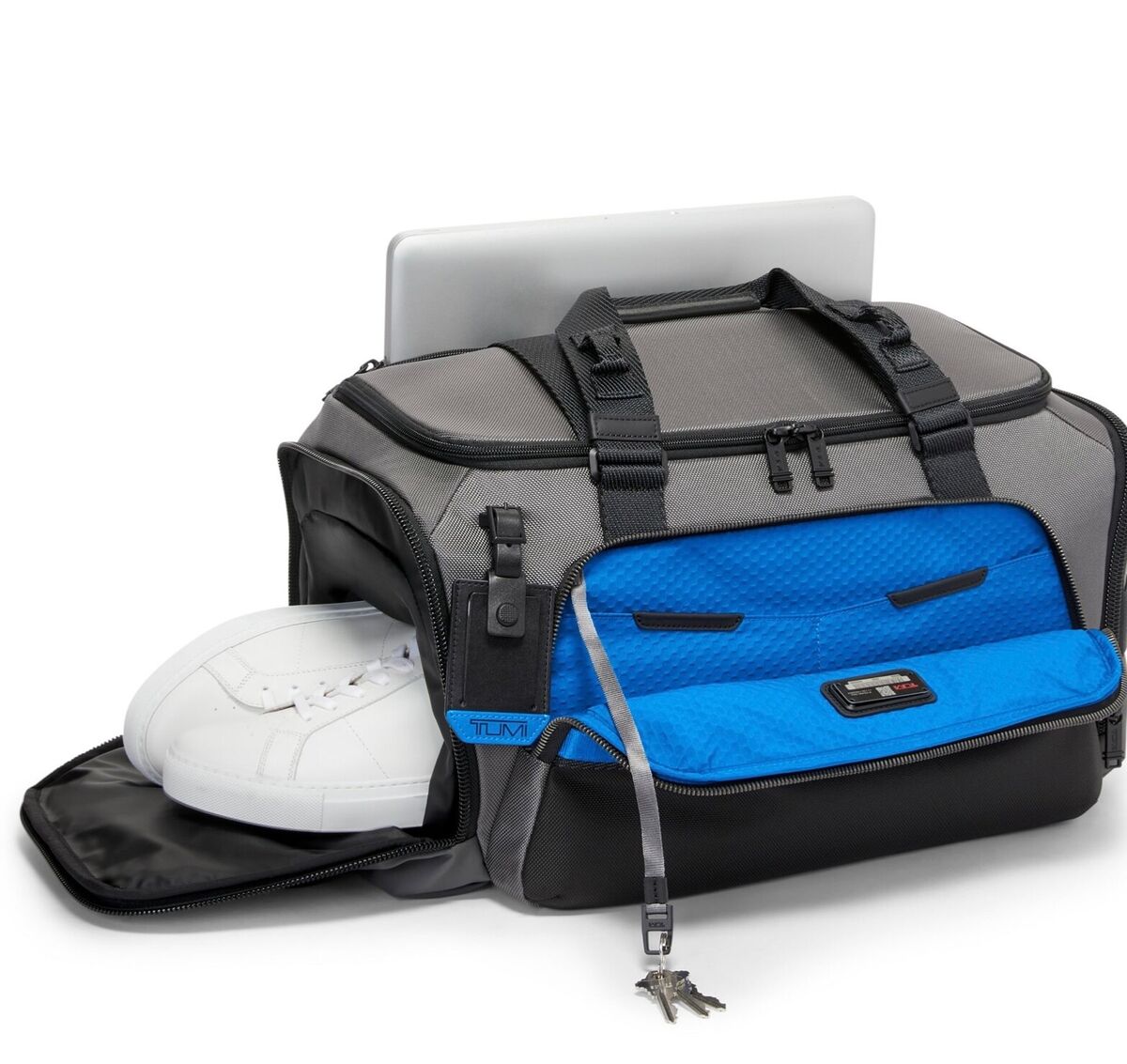 Our answer to the modern duffel, this spacious and rugged bag fits travel and workout essentials, alike. Further adapt it to your lifestyle with compatible TUMI+ accessories. Sold separately.