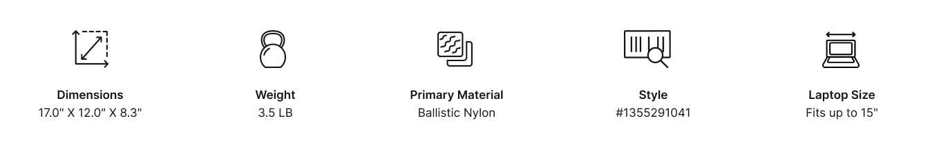 - Zip entry to padded laptop compartment (fits up to a 15” PC or 16” MacBook screen)