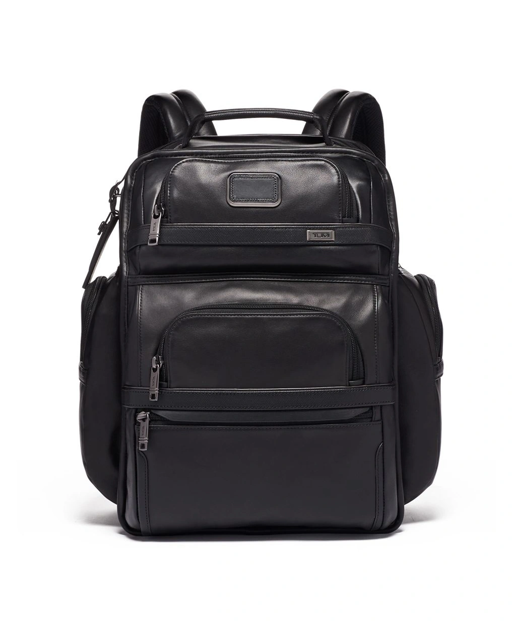 - Padded/adjustable leather-trimmed backpack straps